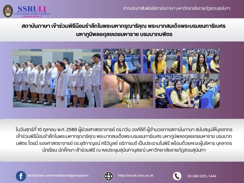 สถาบันภาษา เข้าร่วมพิธีน้อมรำลึกในพระมหากรุณาธิคุณ พระบาทสมเด็จพระบรมชนกาธิเบศร มหาภูมิพลอดุลยเดชมหาราช บรมนาถบพิตร