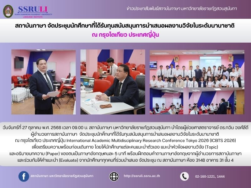 สถาบันภาษา จัดประชุมนักศึกษาที่ได้รับทุนสนับสนุนการนำเสนอผลงานวิจัยในระดับนานาชาติ ณ กรุงโตเกียว ประเทศญี่ปุ่น
