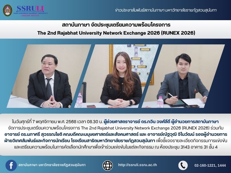 สถาบันภาษา จัดประชุมเตรียมความพร้อมโครงการ The 2nd Rajabhat University Network Exchange 2026 (RUNEX 2026)