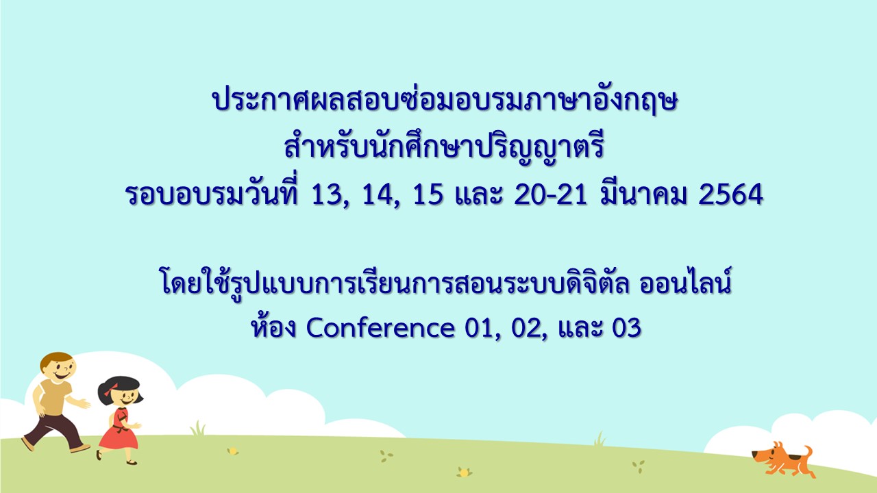 ประกาศผลสอบซ่อมอบรมภาษาอังกฤษสำหรับนักศึกษาปริญญาตรี รอบเดือนมีนาคม 2564