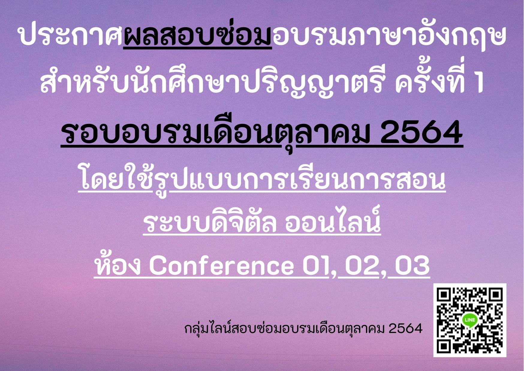 > ประกาศผลสอบซ่อม อบรมภาษาอังกฤษสำหรับนักศึกษาปริญญาตรี เดือนตุลาคม 2564 ครั้งที่ 1